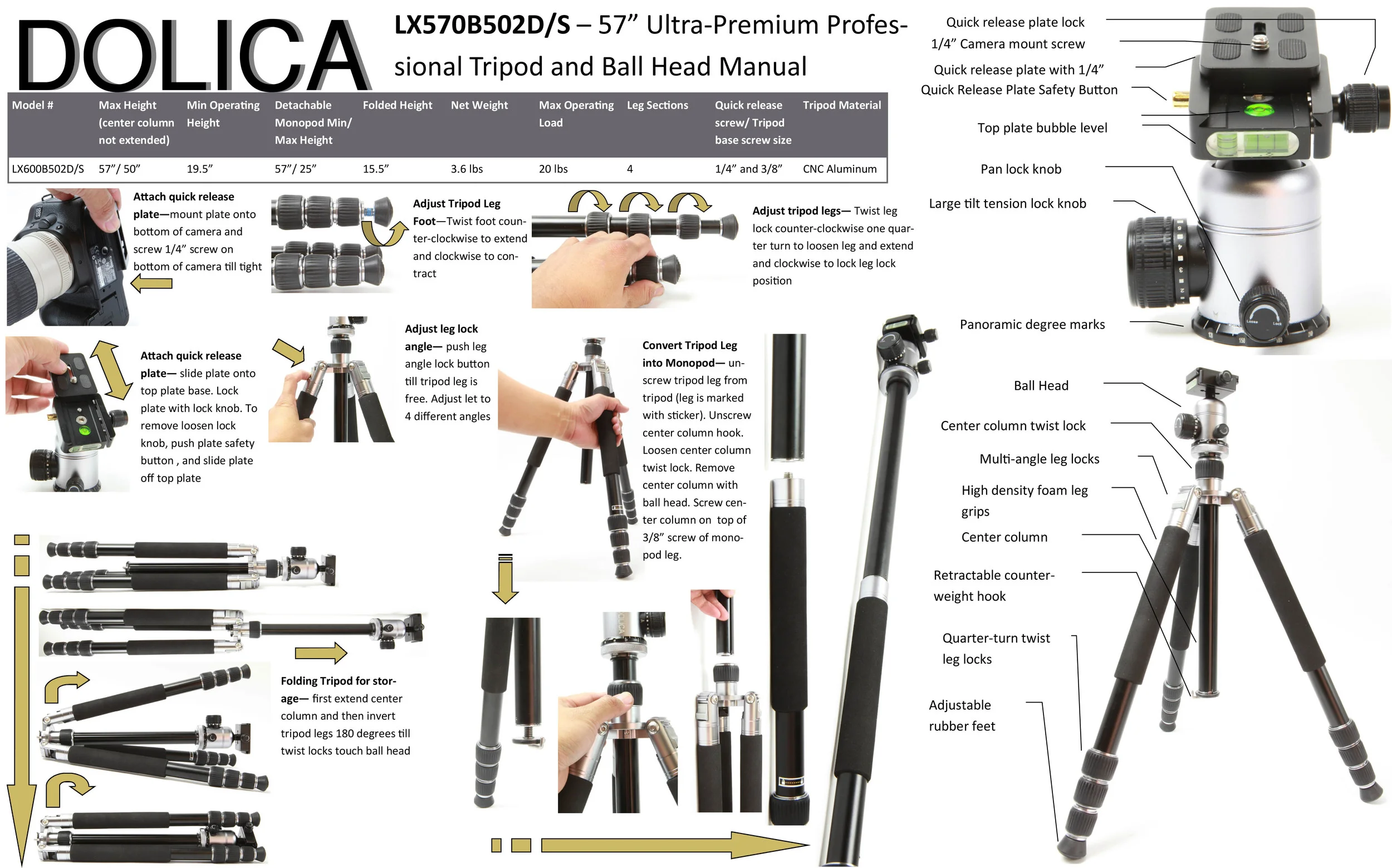 LX570B502DS Ultra Premium Professional Tripod and Ball Head